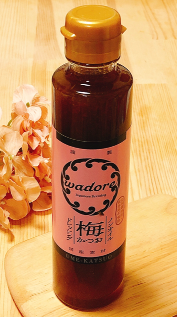 「梅かつおドレッシング」が届きました! ピンク地に黒の文字で、優しいオシャレなパッケージ。 150ml...