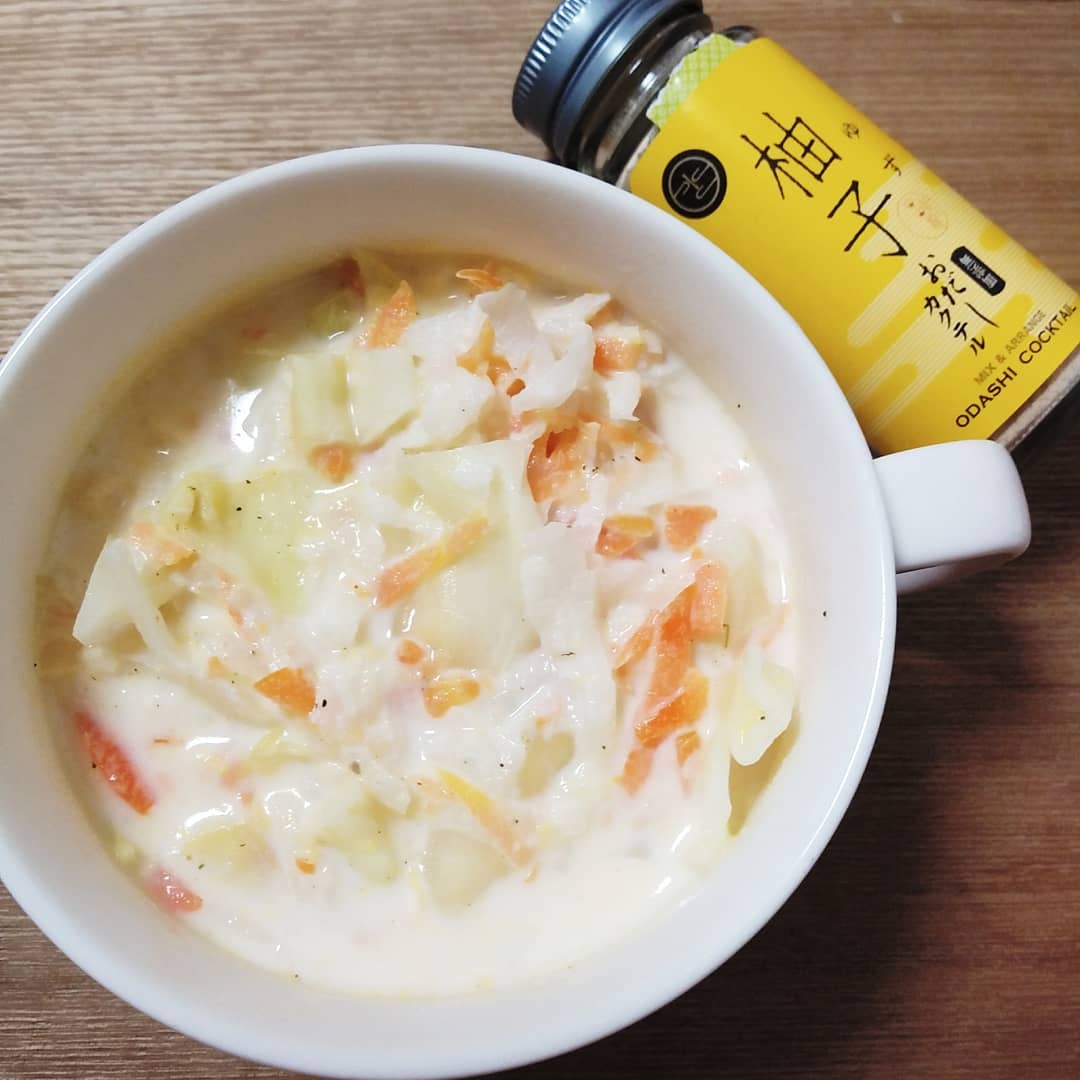 わたしは野菜たっぷりミルクスープに柚子おだしカクテルを投入!