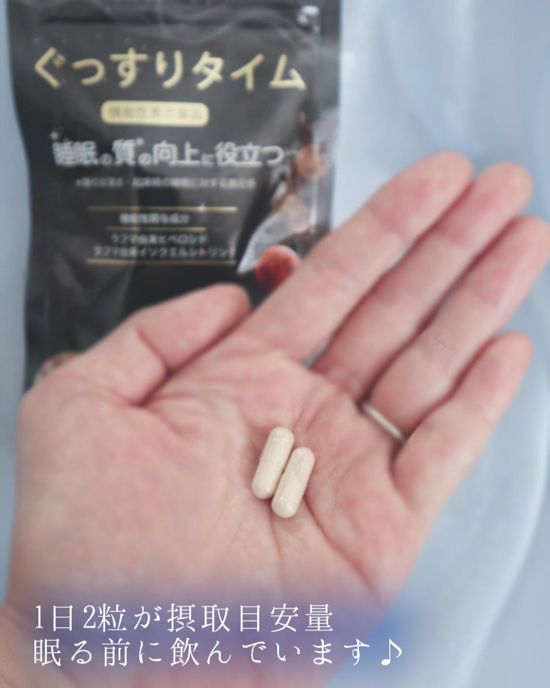1日に飲む目安量は2粒で、私はなんとなく寝る前に飲んでいます。睡眠薬ではないので、すぐ眠れるといったことはないけれど😌起きたときのすっきり感や、飲みやすさに満足しています🙆🏻♀️✨