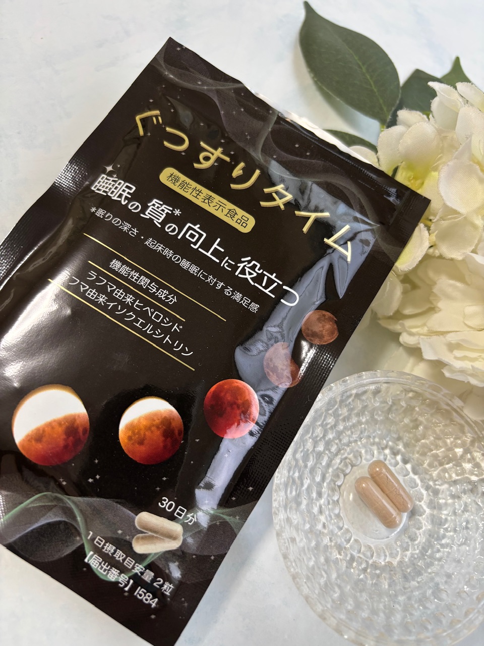 コエタスさまからいただいた「ぐっすりタイム」お試ししています。機能性関与成分のラフマ由来ヒペロシ...