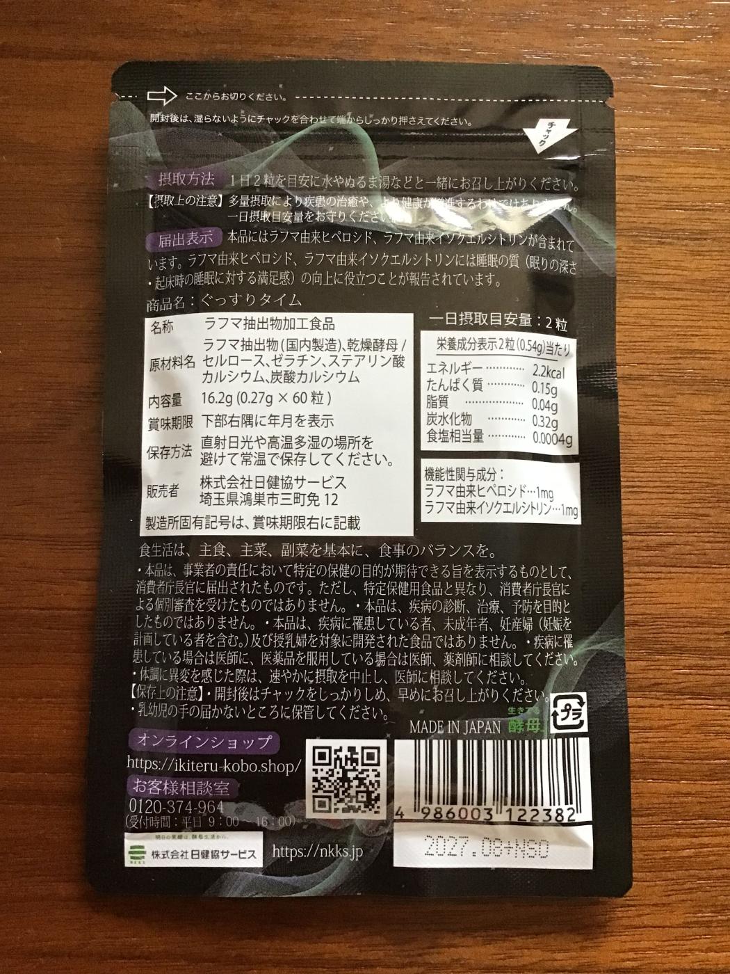コエタスのモニターキャンペーンでいただいた 株式会社日健協サービス ぐっすりタイムについてのレビュ...