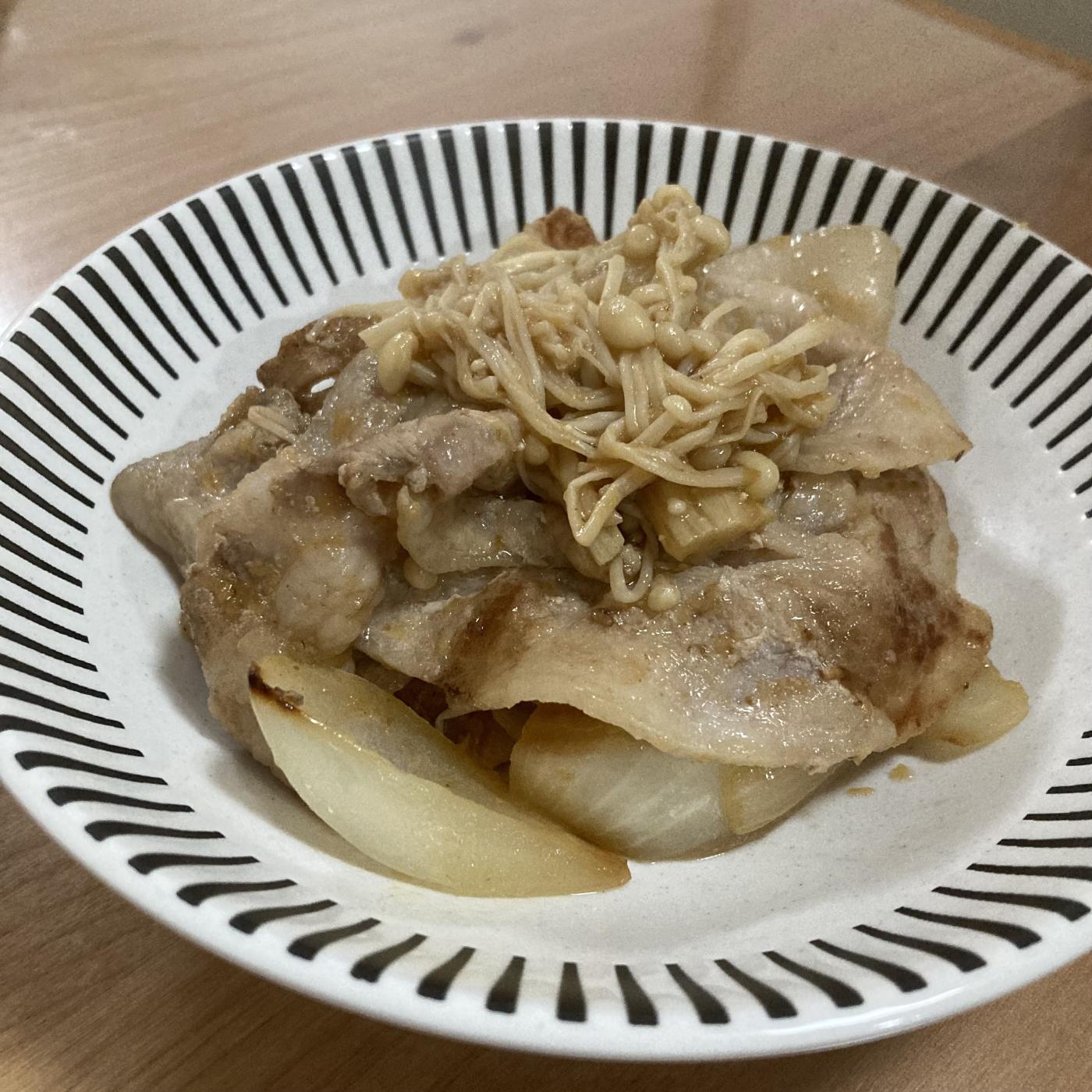 豚肉と玉ねぎとえのきを炒めて