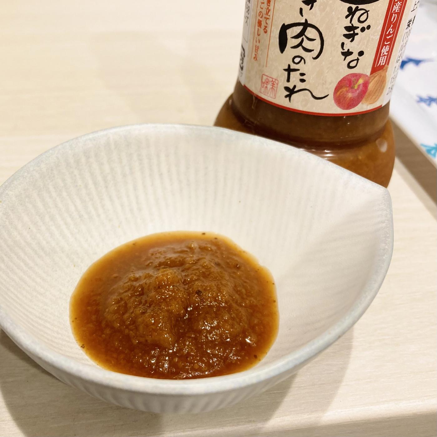 容器を傾けてもなかなかタレが流れ出てこないくらい、淡路島玉ねぎとリンゴをすりおろした果肉がたっぷり入っています♪
