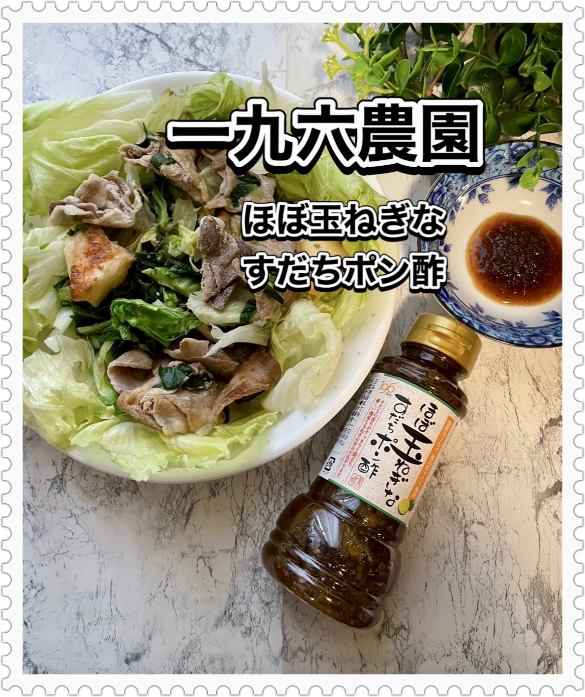 今回ご縁をいただき 一九六農園様の ほぼ玉ねぎなすだちポン酢を 使って野菜不足を解消するべく 豚...