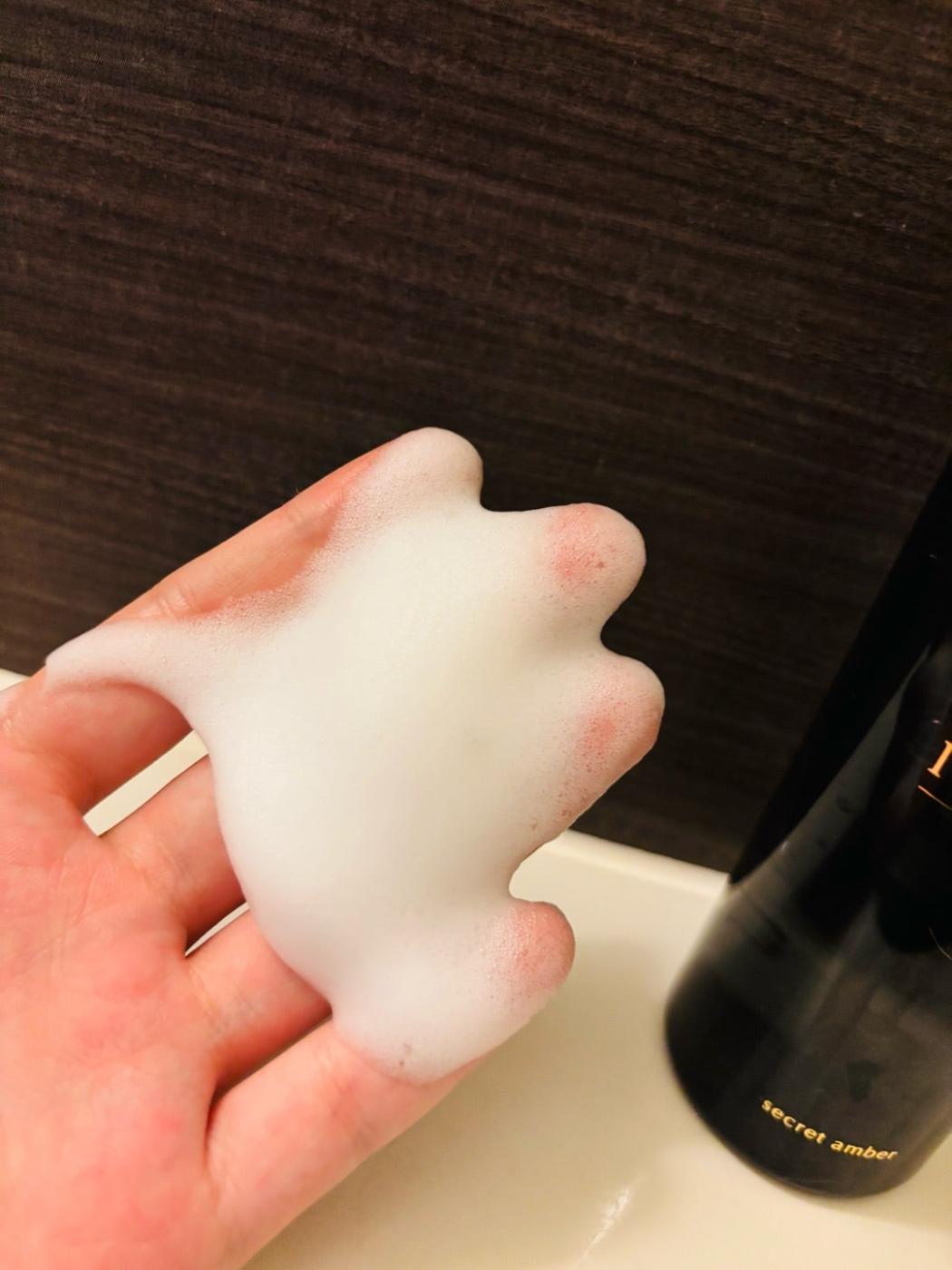 シークレットアンバーの香りらしいのですが、全身この香りに包まれたいっていう感じの香りになっています。香水っぽい上品な香りで、ほんのり甘さがありつつ優しい感じがします。めちゃめちゃ好みの香りなので、すごく癒されます。