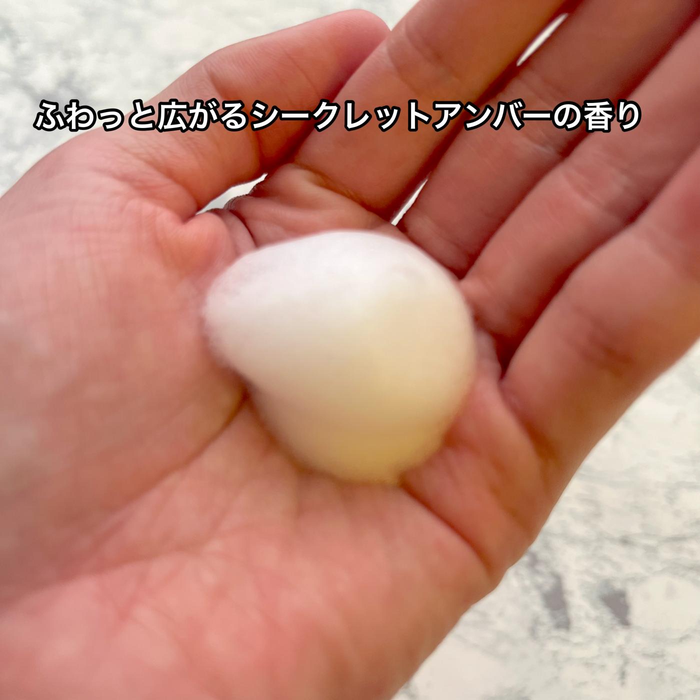 ふわっと広がるシークレットアンバーの香りも良く、泡で出てくるので泡立てる必要はなく、洗い上がりもしっとりしているけどさっぱりしていて好印象でした☺️