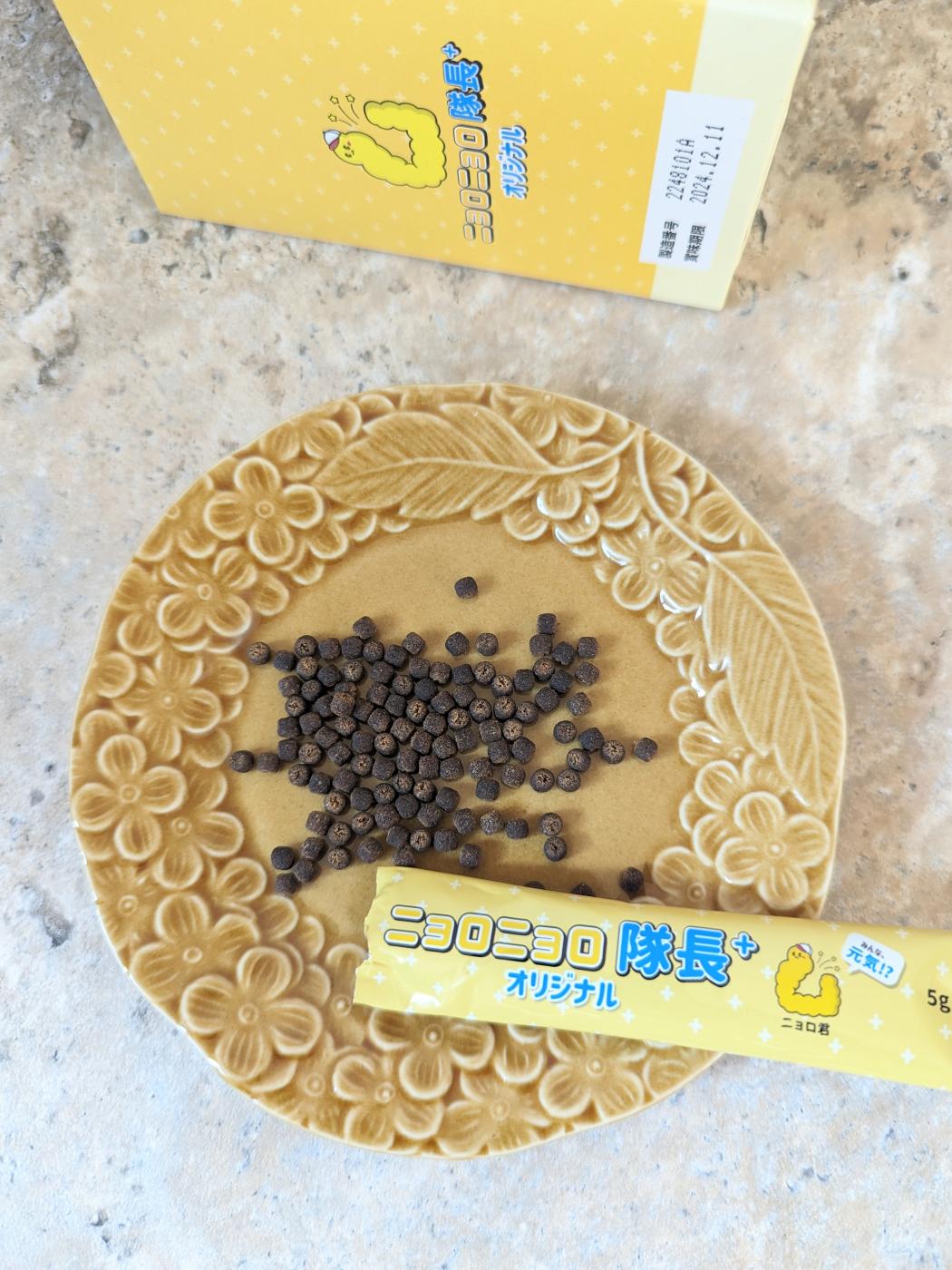 コエタス様に提供していただいたニョロニョロ隊長+オリジナルは粒粒をたっぷりのお水で飲むことでお腹をスッキリさせてくれることが期待できる、助かるアイテムでした♥✨
