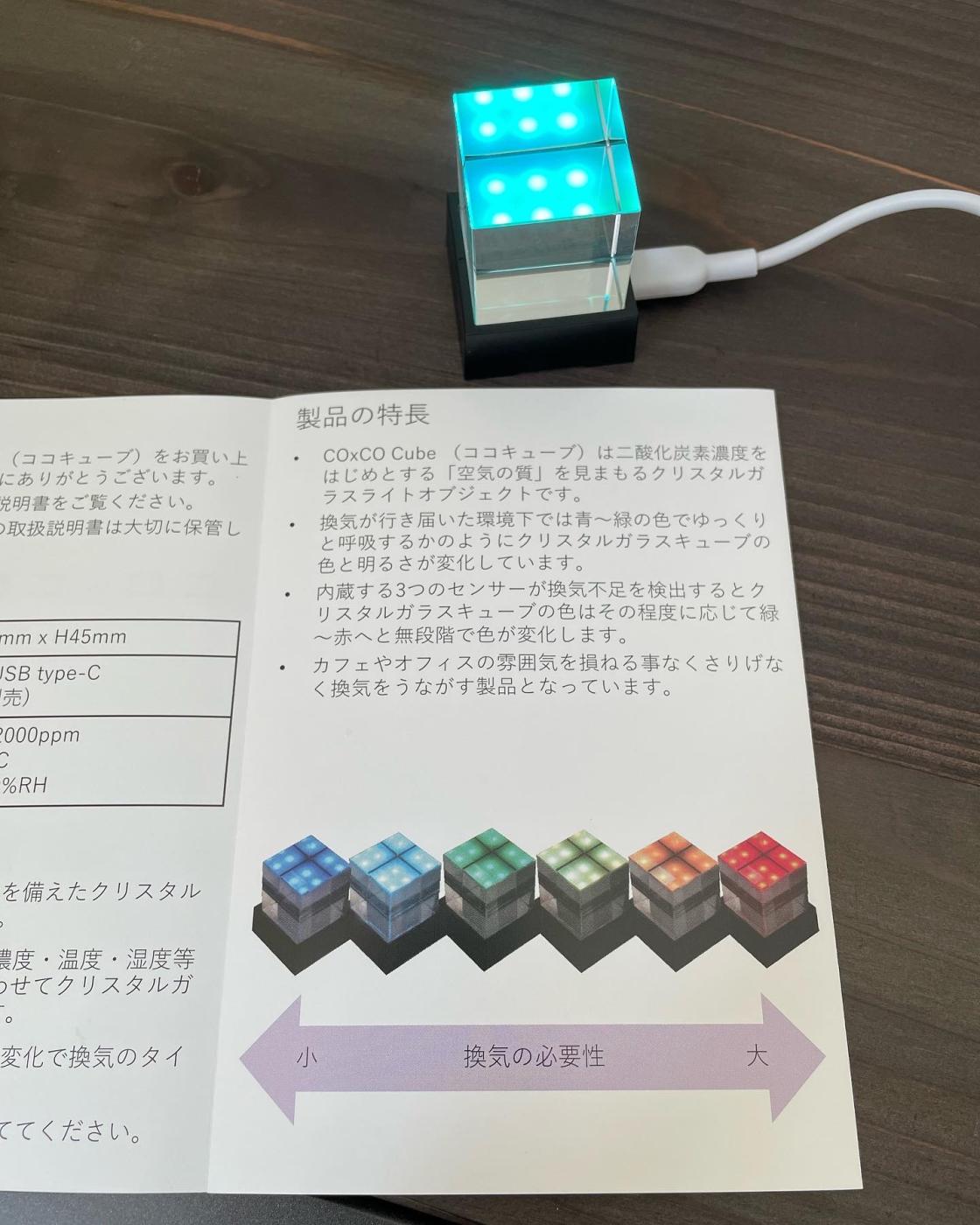 CO x CO Cube (ココキューブ)は、換気を見まもるクリスタルガラスライトオブジェクト🤗