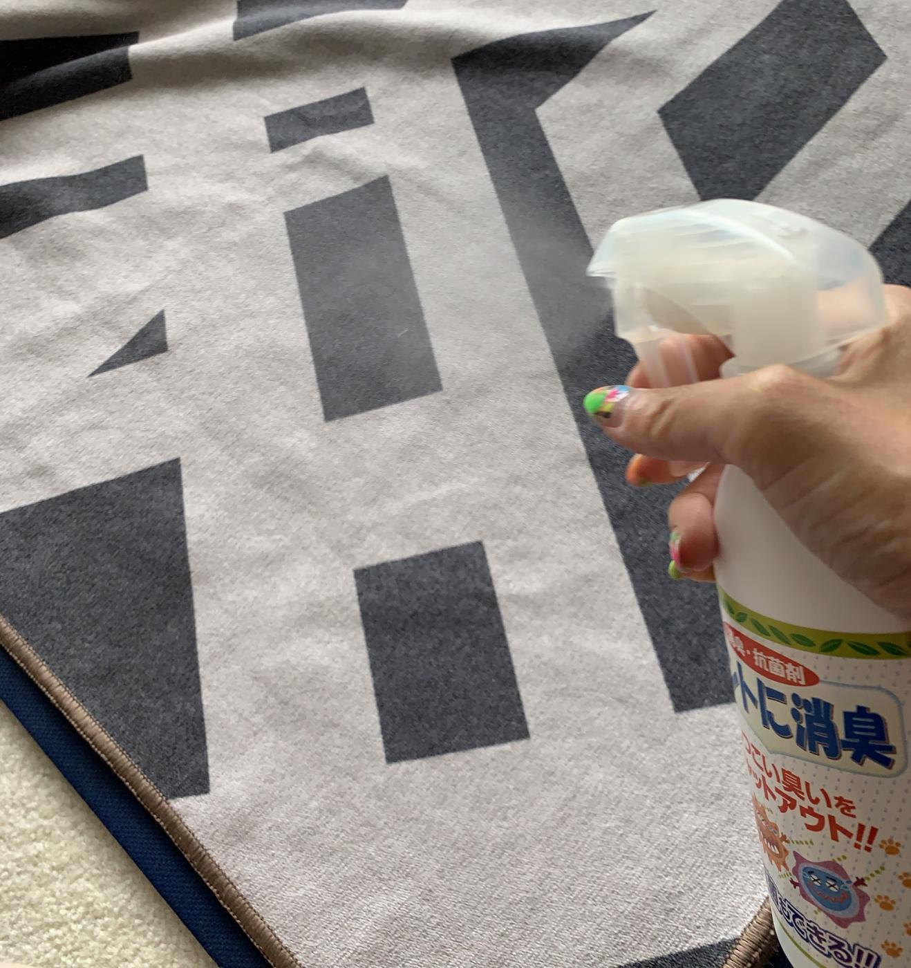 そのほかにホットヨガで使っている「ラグ」にも吹きかけます。