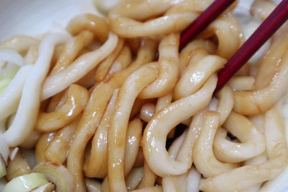 甘い醤油タレで、おうどんにタレが浸み込んでいます。