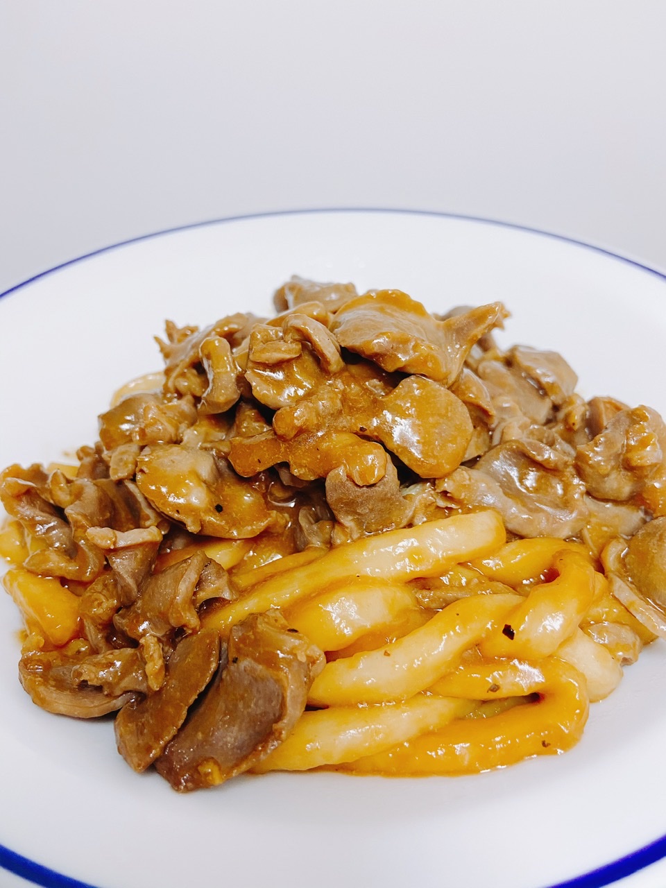 3食目は焼きうどんにしました。味付けは付属のタレのみ!ズリを胡椒で炒めたものを絡めました。焼きうどんにすると、美味しいつゆが濃厚になり、少し香ばしさも相まってまた別の美味しさに出会えました!
