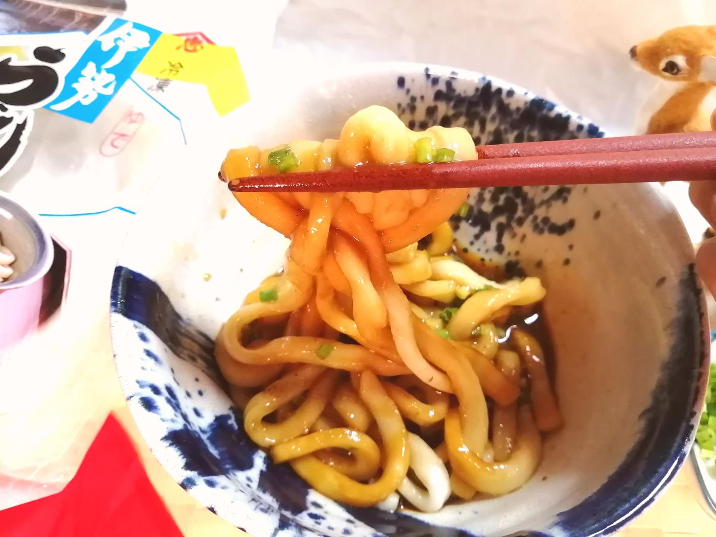 ランチに山口製麺の冷凍伊勢うどんを食べました。