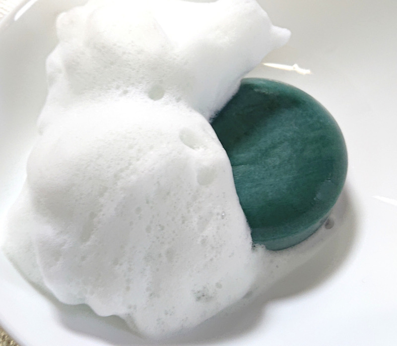 宇治の抹茶たっぷり感のこのせっけん、しっかりと深い感じの緑色~~。