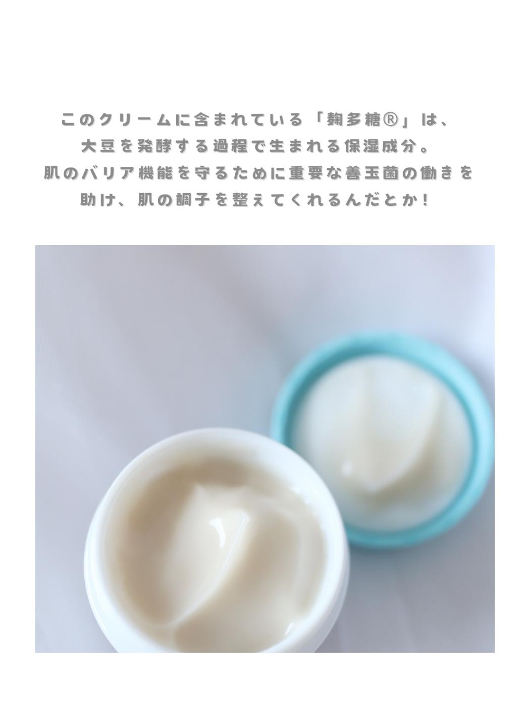 麹菌×乳酸菌 肌の善玉菌をサポートする保湿クリーム。 敏感肌の人にこそ使ってほしいクリームだそうで...