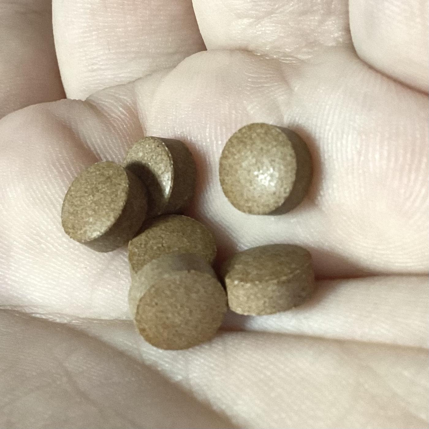 数だけ見ると多いなぁと思いましたが、ひと粒が大きくはないので飲み込みにくいとかはないかな。少しにおいはありますが、嫌なにおいではないかなという印象です。原材料のにおいなのかな?