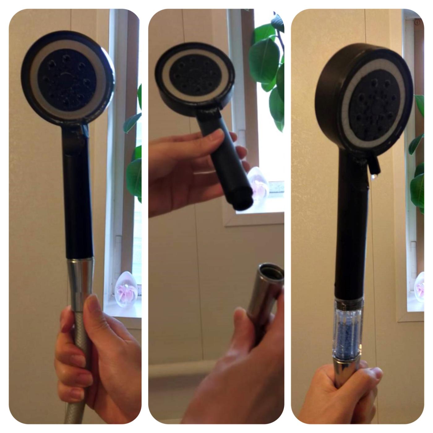 シャワーヘッドをホースからいったん外して、シャワーヘッドとホースの間にとりつけるだけ。