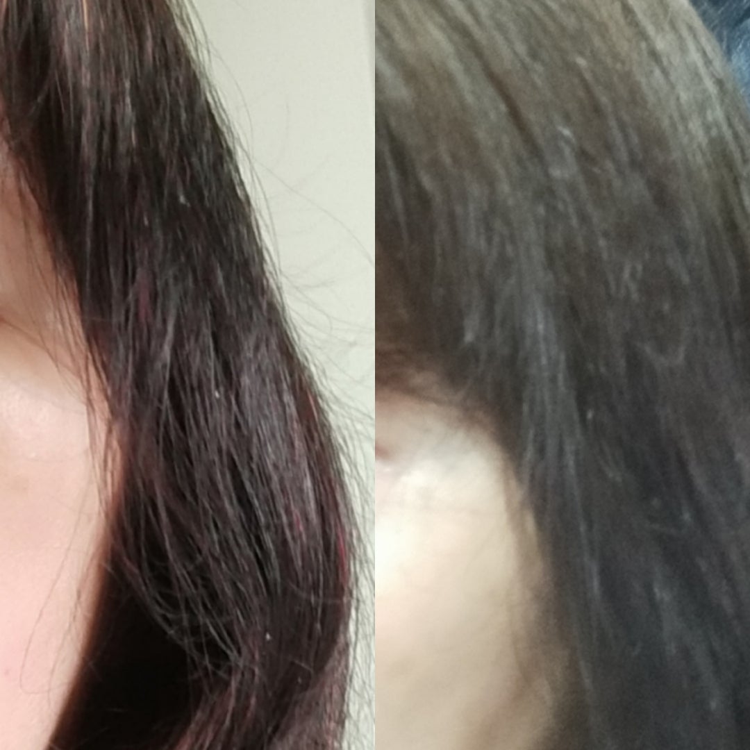 使用前は、髪が乾燥してパサつきやうねりがあったんですが、使用後はつるんとしてパサつきがなくなっていました。