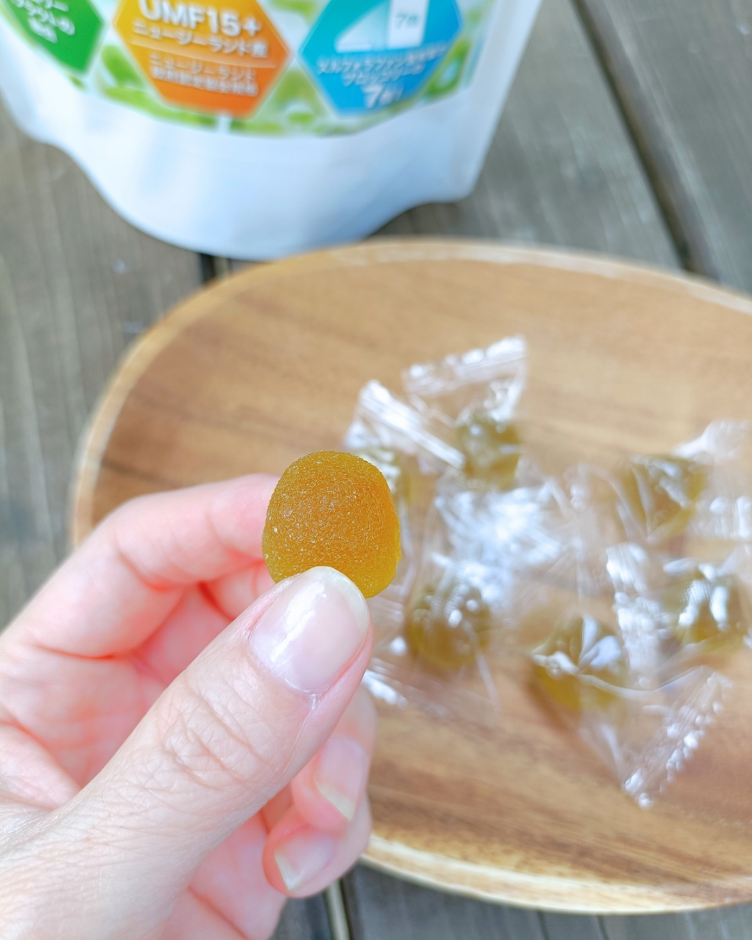 喉が痛いときにマヌカハニーののど飴舐めたりするんだけど、マヌカハニーのはいった"グミ"なんて初めて見たー!!