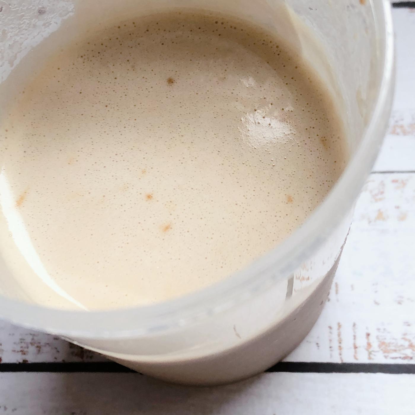 付属のスプーン約2杯で200〜300mlの水が目安なのですが、200mlだとプロテイン慣れしていない人は飲みにくいかもしれないので、300mlにしたり牛乳に置き換えるのがオススメです!!あっさりと飲むことができます😋💕💕