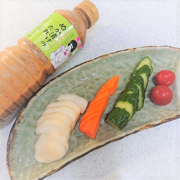 食べて安心の米ぬかを使用しているので、ぬかを洗い流さずに食べる事も可能で、ぬか漬けの他にも、ディップ等、食べるぬか調味料として使う事も可能とのこと。