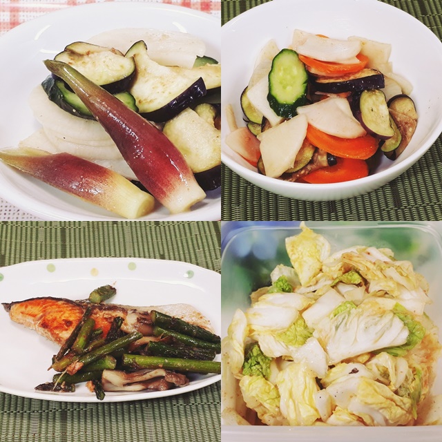 ・それで我が家は、夜に大根が多いので、浅漬けのように冷蔵庫にある野菜を集めて、密閉の袋Lサイズに半分入れてから、40mLくらい入れてもんでから冷蔵庫にいれ、朝食に出していました。