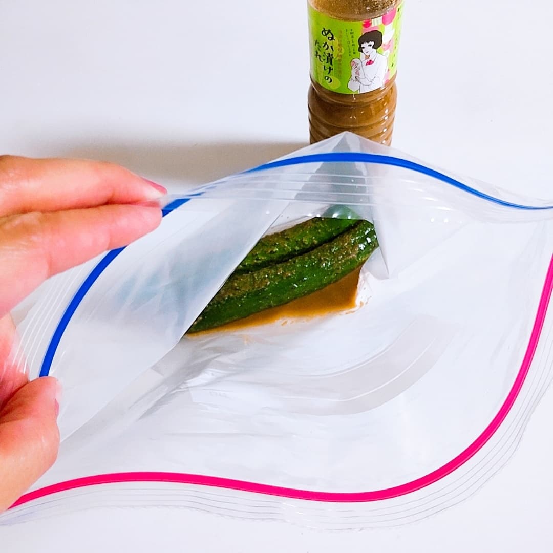 ジップロックに野菜とタレを入れて冷蔵庫で一晩から