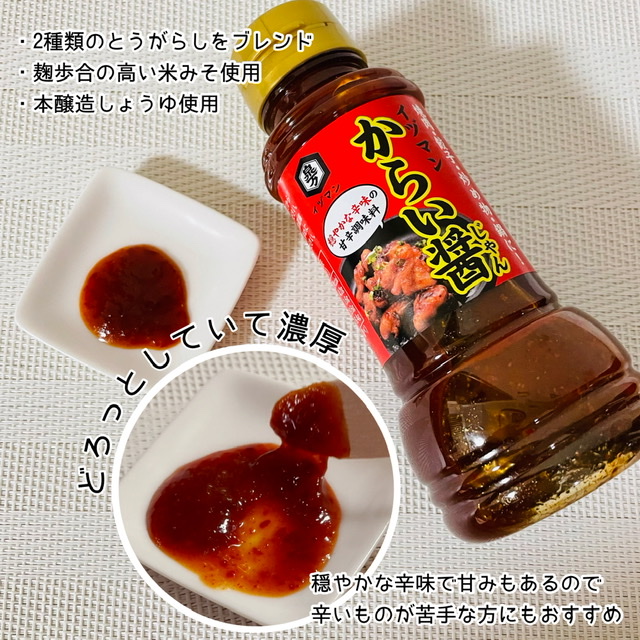 イヅマンからい醤お試しさせていただきました。 見た目のタレの色はとても辛そうだなぁと思いましたが...