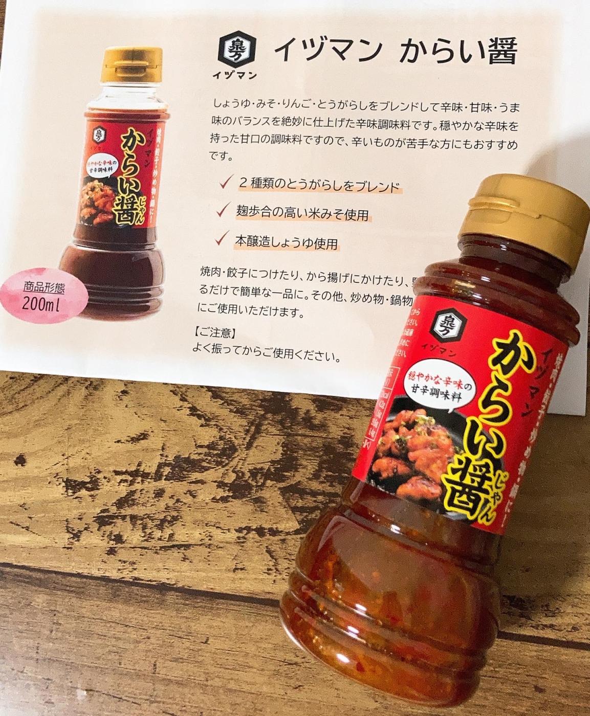 泉万醸造株式会社 様 イヅマン からい醤 商品提供していただきました🎁 しょうゆ・みそ・りんご・と...
