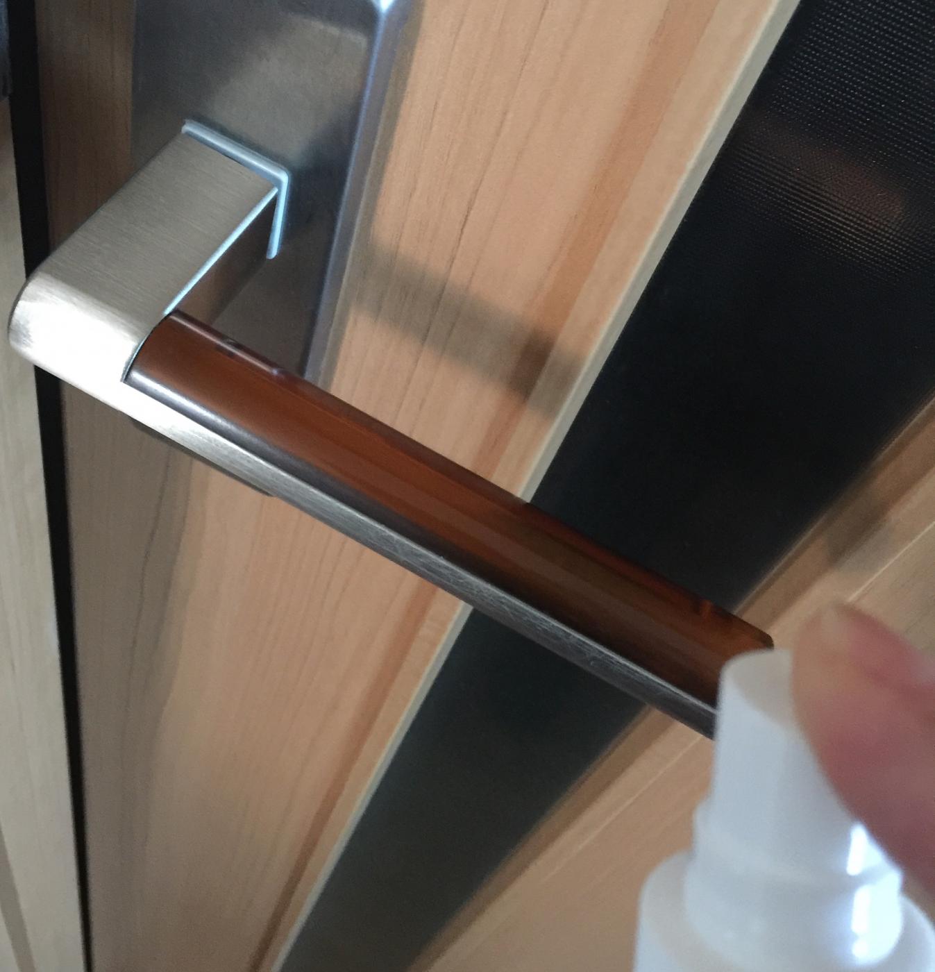 床やテーブル、ドアノブ等の除菌。シュッシュッと ドアノブに吹きかけて使っています!