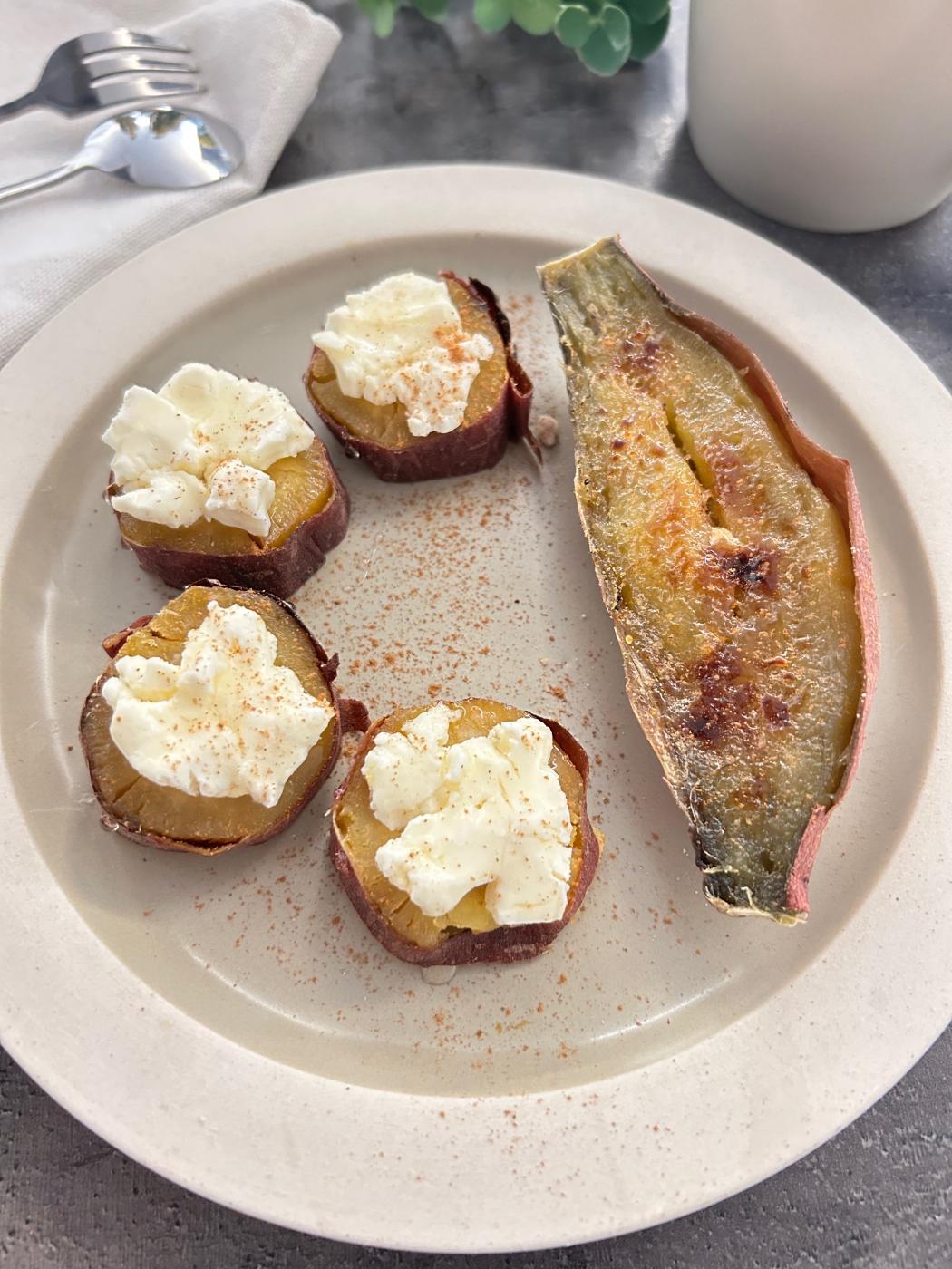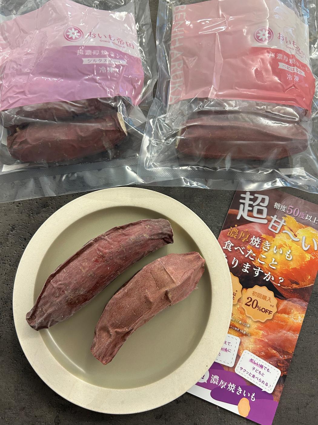 おいも帝国様の”超濃厚冷凍焼き芋”のシルクスイートとべにはるかを使って、簡単おいもスイーツを作ったよ🍠✨