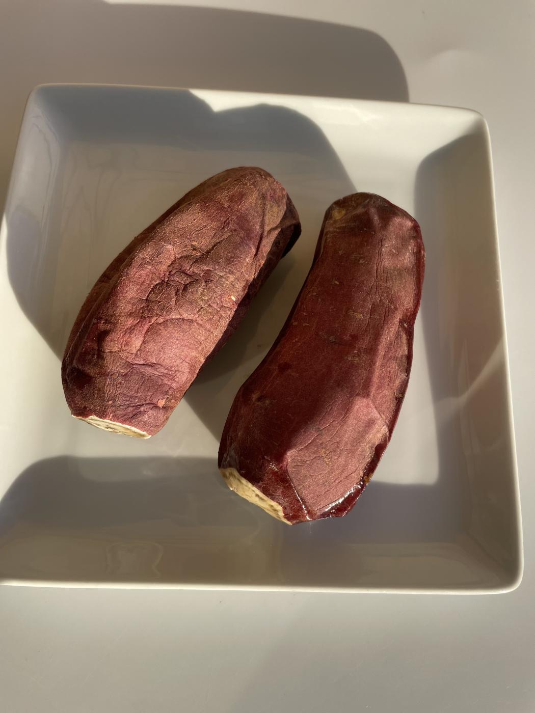 おいも帝国様の”超濃厚冷凍焼き芋”のシルクスイートとべにはるかを使って、簡単おいもスイーツを作った...