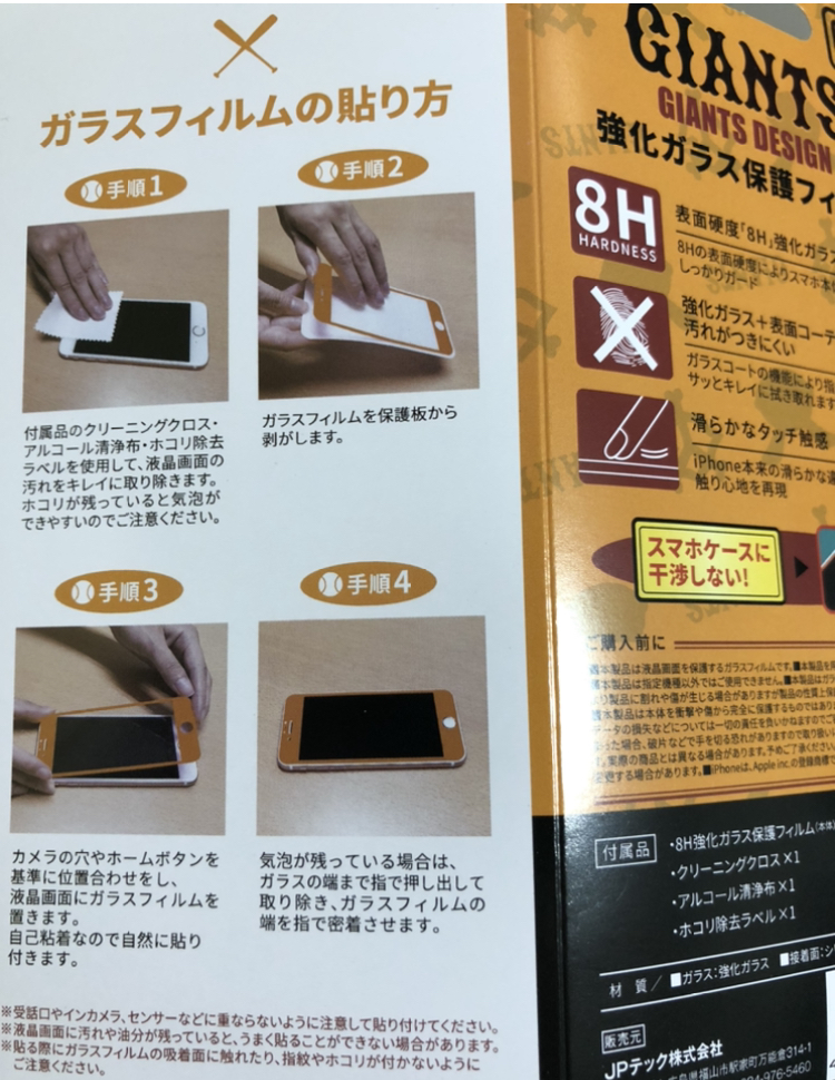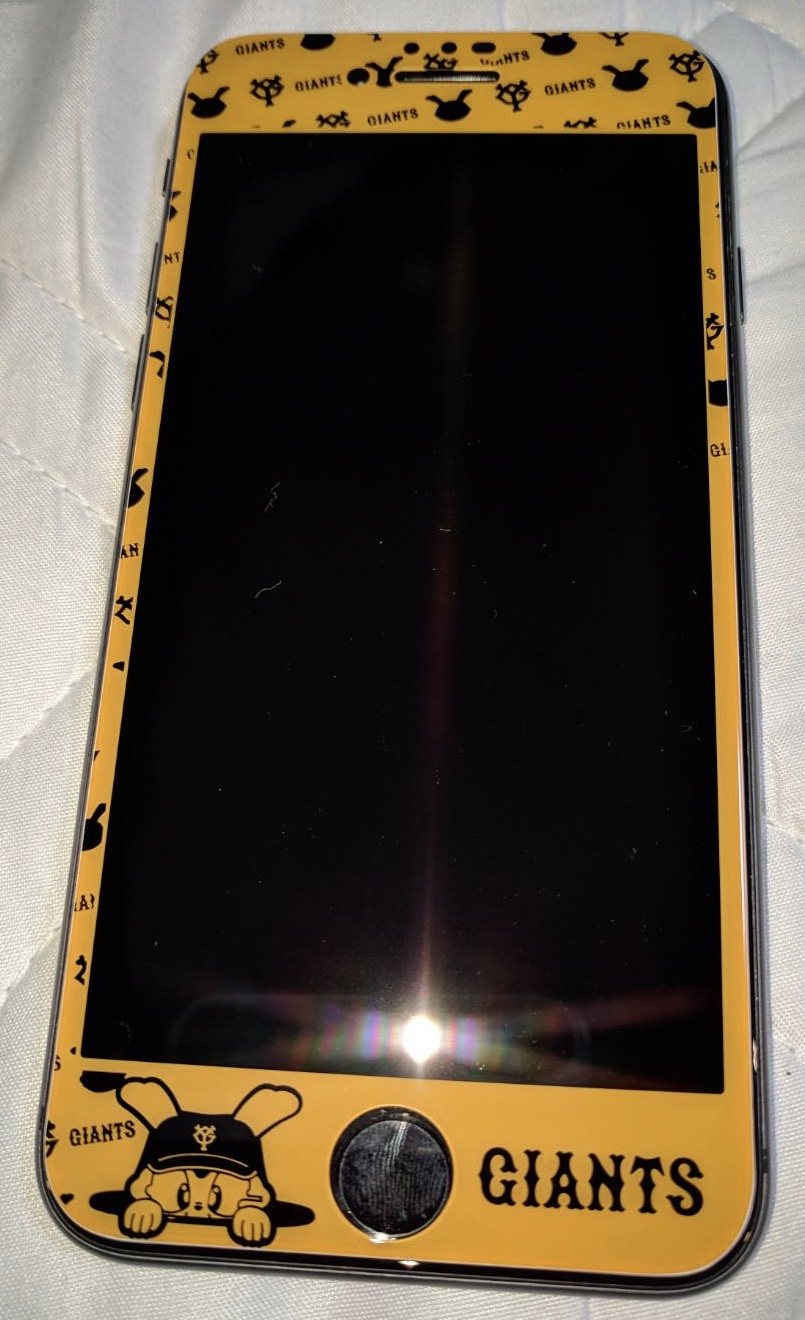 ジャイアンツデザインの強化ガラス保護フィルムを早速つけてみました。