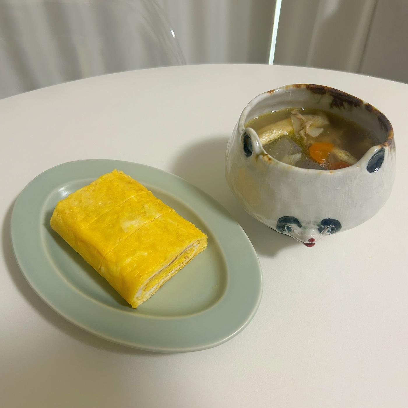 つくったのは、出汁を楽しむといえばの「卵焼き」と、ちょうどお出汁が届いた日が急に温度が下がった寒い日だったので温まるようにショウガたっぷりの「豚汁」にしました✨