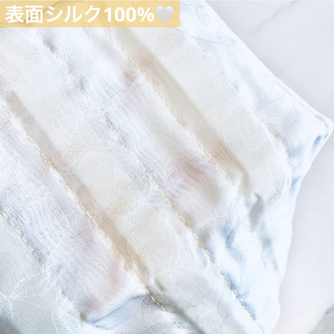 表面はシルクで、裏面はガーゼになっていて生地と生地の間の