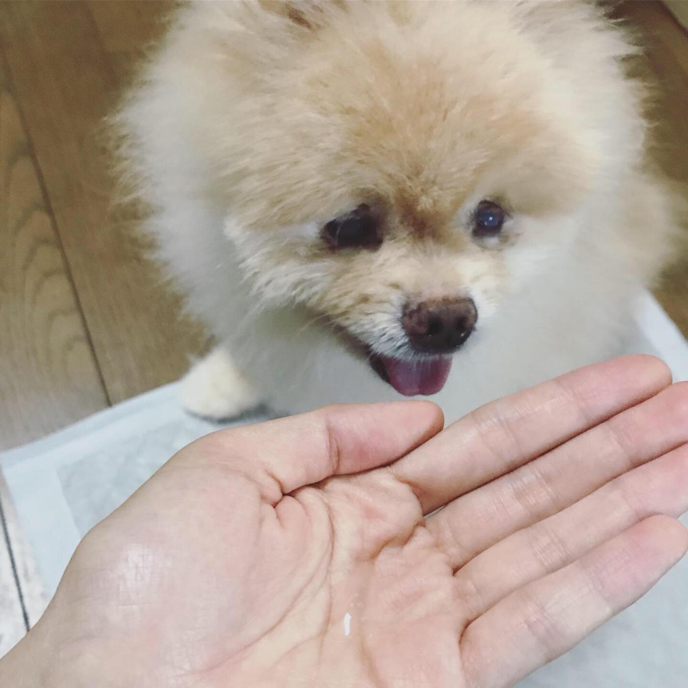 ボトルを見せただけだと何も反応しませんでしたがジェルを出すと美味しい物だと気づいたらしくおすわりしました( ̄▽ ̄;)