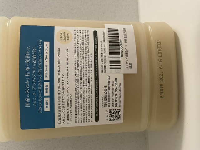 *岐阜県産*のお米からとれた栄養豊富な米ぬかと、北海道・三陸産の昆布を使用し、酵素で作られた入浴液に更にエプソムソルトを高配合したものだそうです!