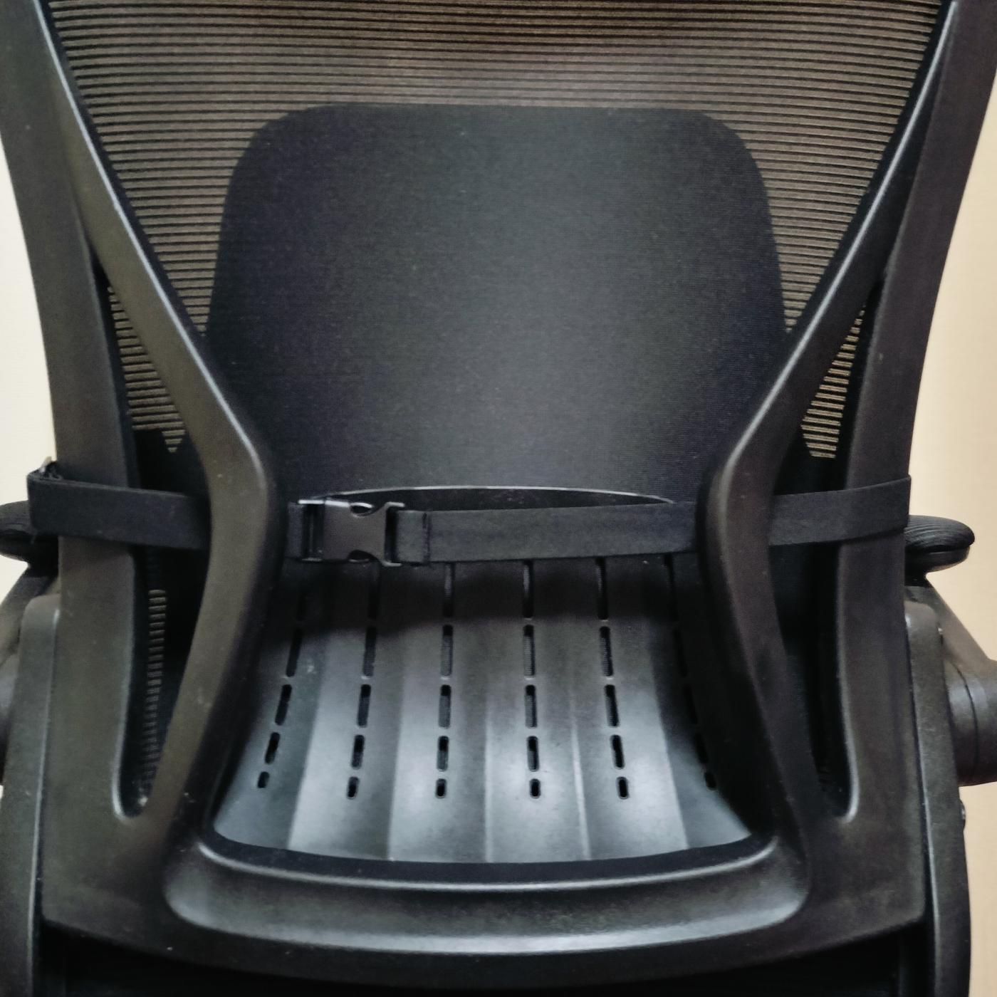 長さ調整可能なベルトがついているので、背もたれにちゃんと固定できます。