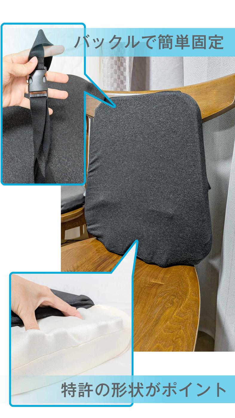 正しい姿勢を意識しなくても続けられるように設計したクッションだそうで