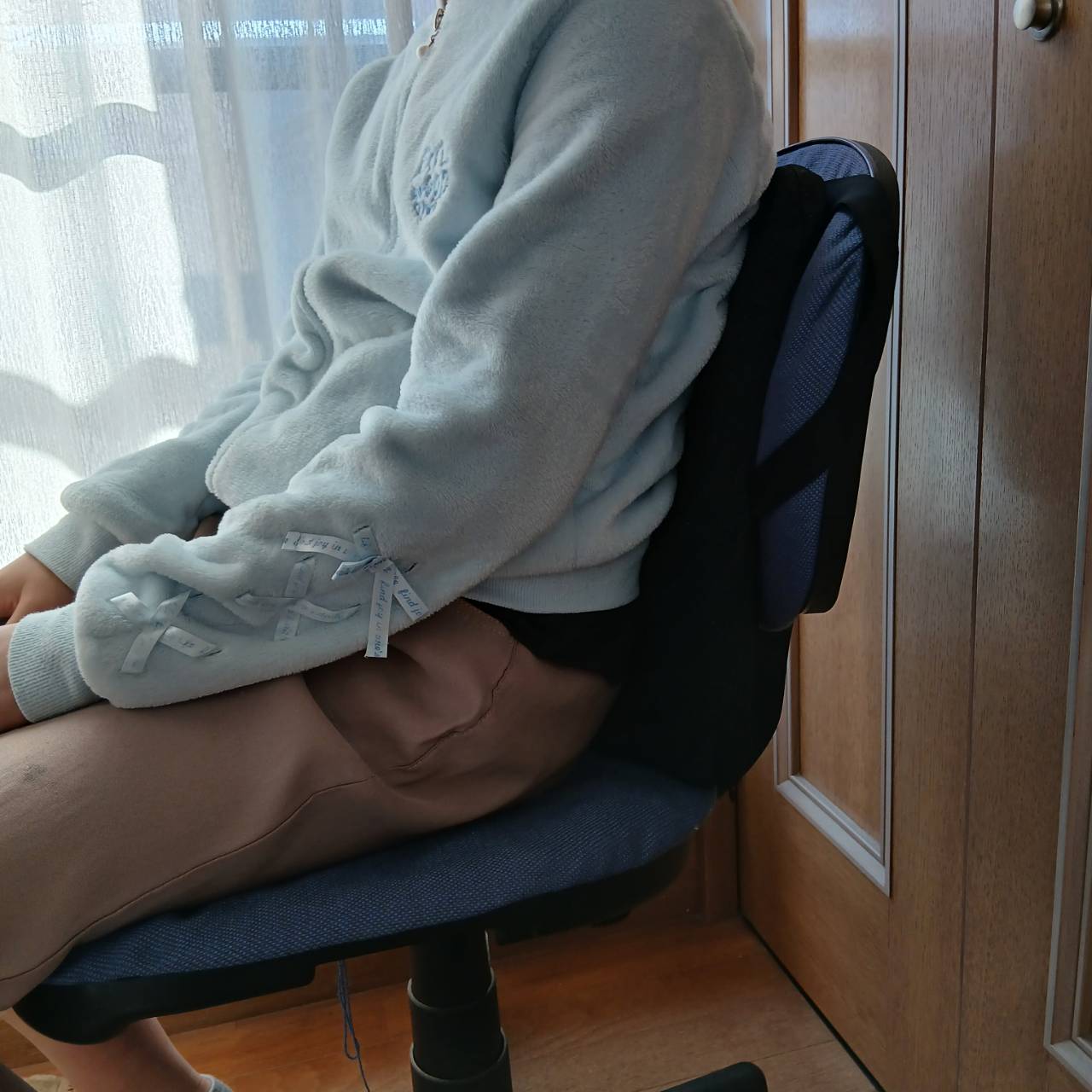 程よい弾力がある低反発ウレタンフォームで、背筋がスッと伸びる感じがしました。体を預けていても、ラクに座っていられます。軽くて持ち運びもしやすいので、自分が座る場所に一緒に移動☆