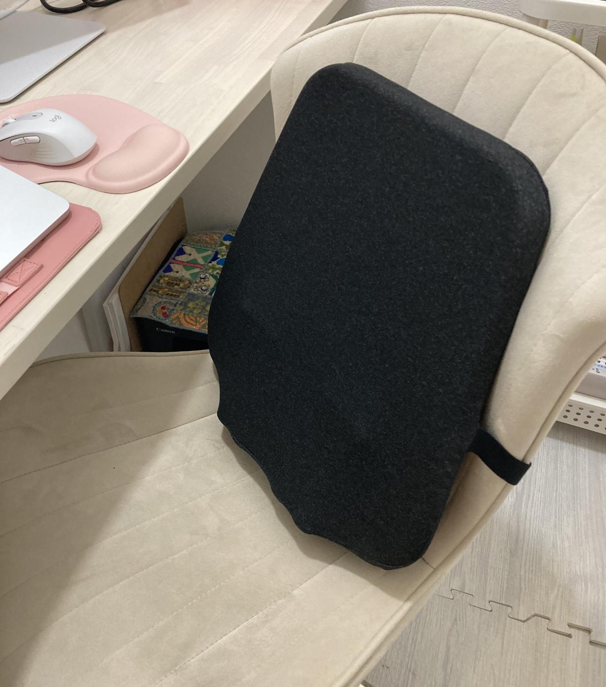 在宅ワークを支える商品はたくさんありますが、デスクや椅子は高額なものが多かったり、仕事環境の位置ごと変えないといけなかったりと、なかなか買えずにいたところに見つけたこのクッション。