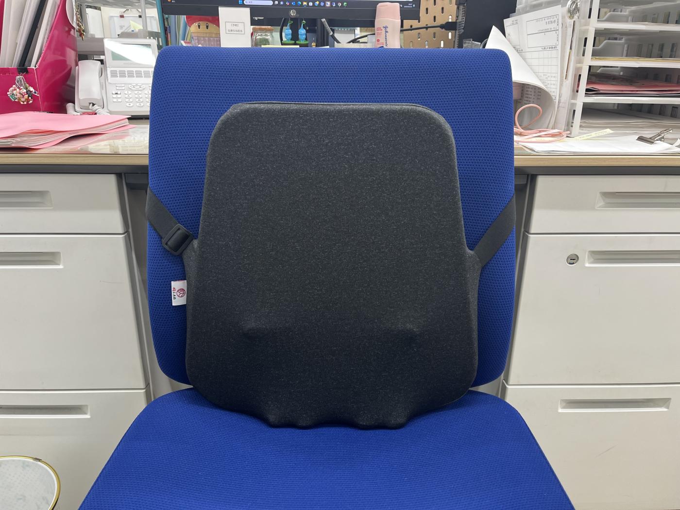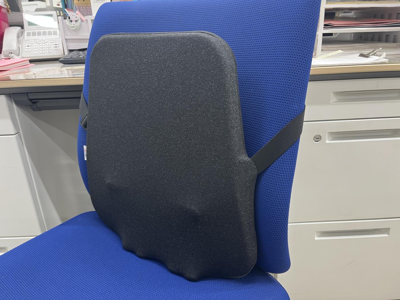 このクッションには太めのゴムがついていて、どんな形の椅子にも取り付けができるし、調整などが不要なので職場にも持って行きやすいです。デザインもシンプルでデスク周りにも馴染みやすくて気に入ってます♬