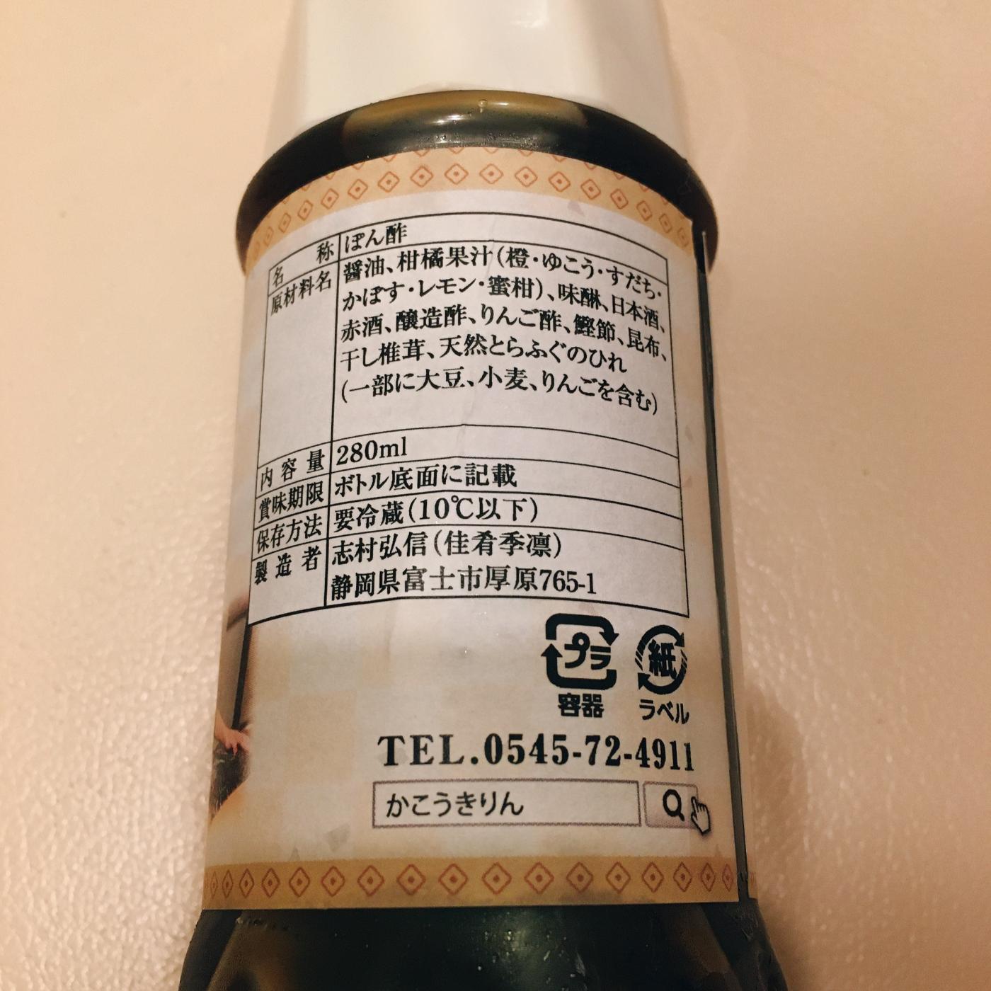 ポン酢を買う時は、すだちなどの搾りかす(?)が沈殿しているような、柑橘類の強いものが好きな私としては、本当に好きなぽん酢でした。