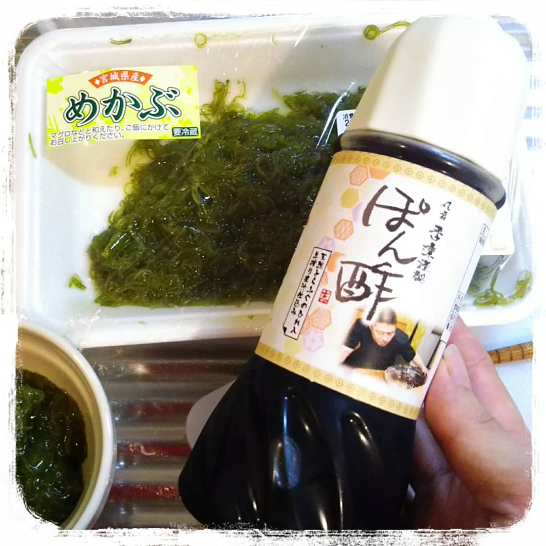 まずは私が大好きなめかぶに?めかぶは普段からポン酢をかけて食べる。