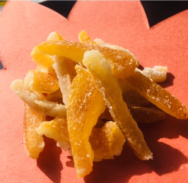 ゆずの皮をそのまま砂糖漬けにして乾燥させたものなので、食物繊維豊富ですしビタミンも豊富です。
