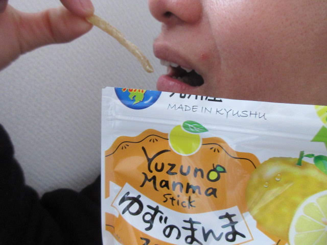 試しに1本、そのままで食べてみました。柚子の爽やかな香り、そして程よい甘酸っぱさが癖になる美味しさですね!これはおやつにピッタリだと思います。