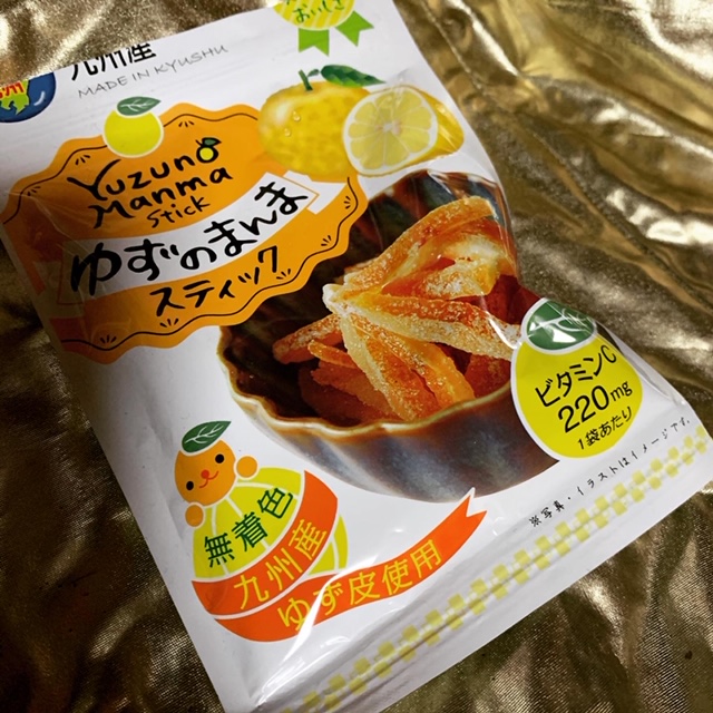こちらは、宮崎県産のゆず皮を甘酸っぱいスティックタイプの砂糖漬けにしたお菓子。