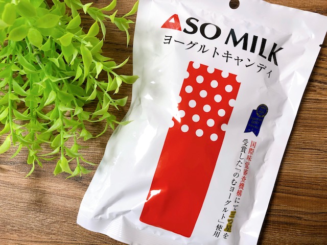 このASOMILKは食品のミシュランガイドと称される国際味覚審査機構にて、のむヨーグルト(ドリンクタイプ)として三ツ星(「極めて優秀」)を受賞した、熊本県阿蘇市の阿部牧場のヨーグルトを配合した贅沢なキャンディ。