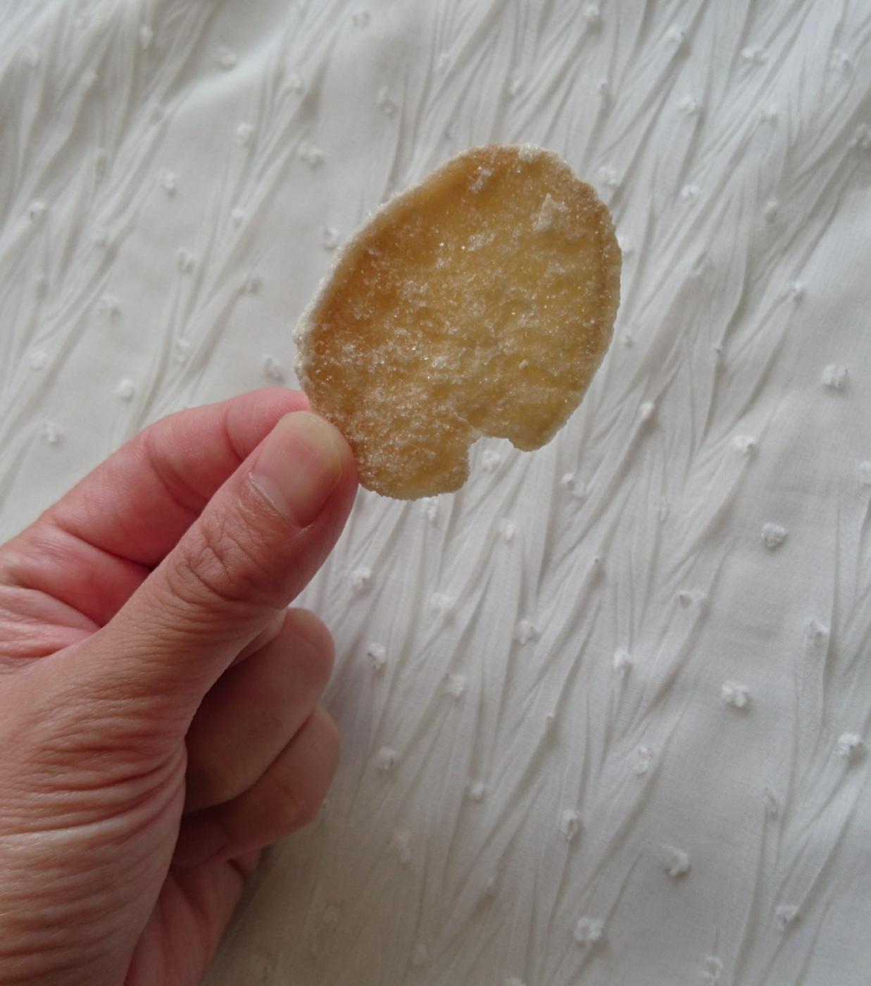 スライスしたしょうがに砂糖をまぶしているので最初は甘さが全体的に広がります。