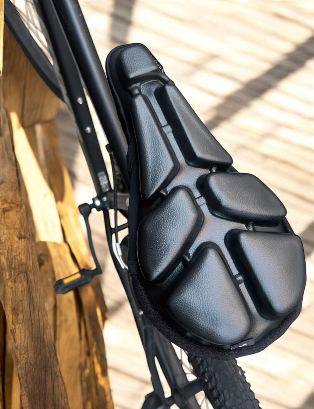お尻にフィットして30分のサイクリングも楽になったと話していました。つけ方も簡単でマジックテープでさっとつけるところもいいです♪見た目は高級感があってレザー調なのもおすすめです!