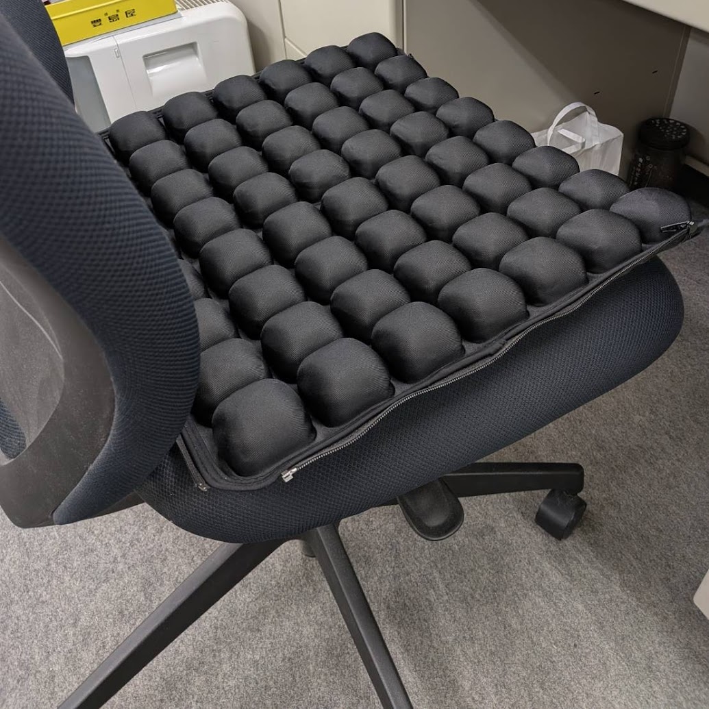足やお尻にかかる圧力を分散させること、血管の圧迫を抑制し、むくみなどにもアプローチしてくれるそうなので今は私が自宅で使っています。